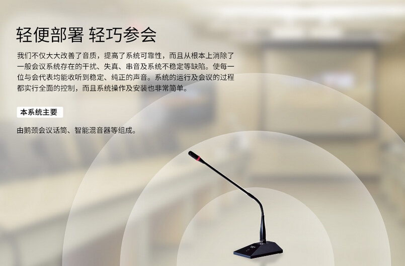 會(huì)議是日常工作環(huán)境中不可缺少的一個(gè)環(huán)境,本方案致力于解決會(huì)議系統(tǒng)的基本需求,但在滿足基本需求的條件下,提供可選配置,用于補(bǔ)充會(huì)議系統(tǒng)某些方面的需求。